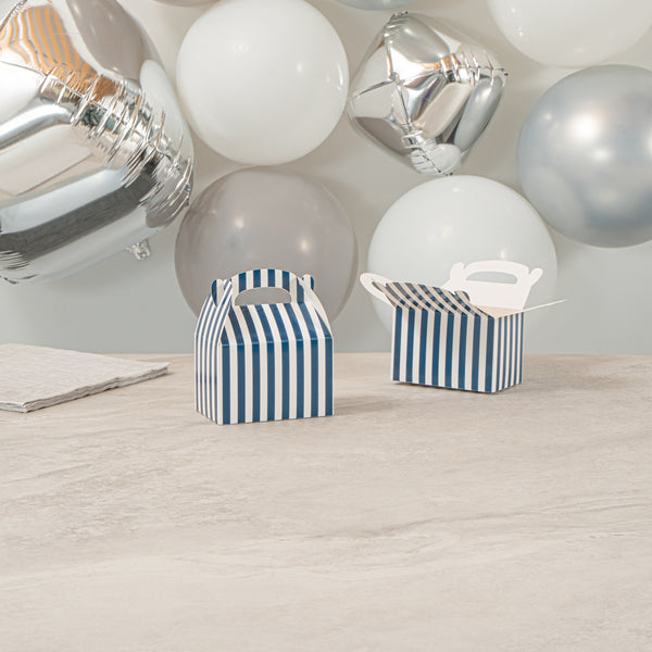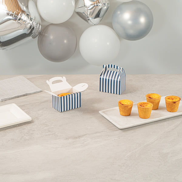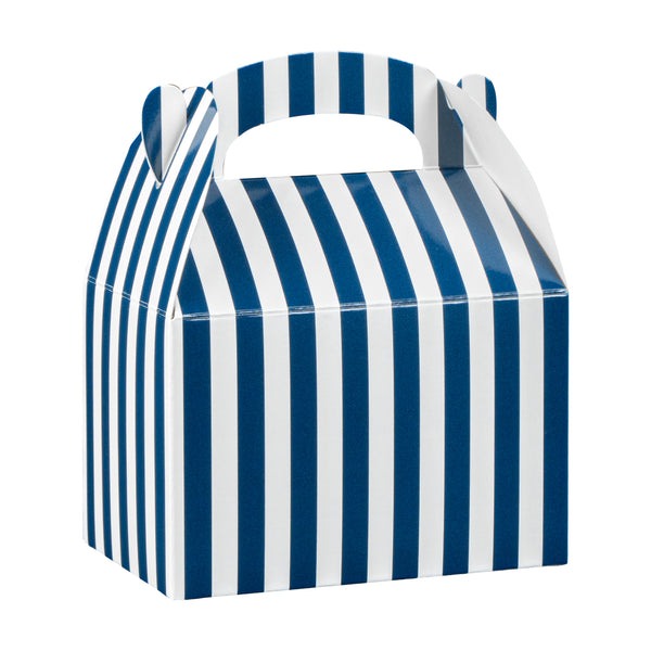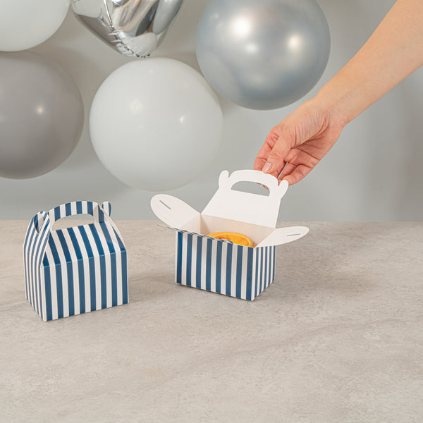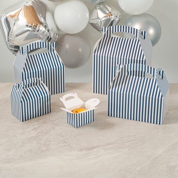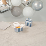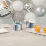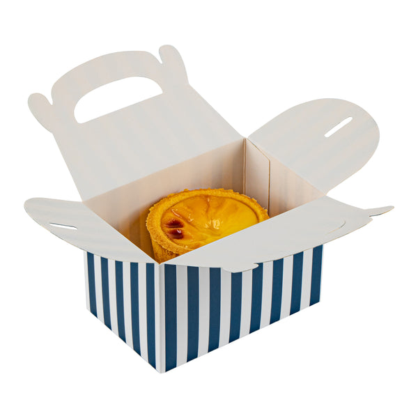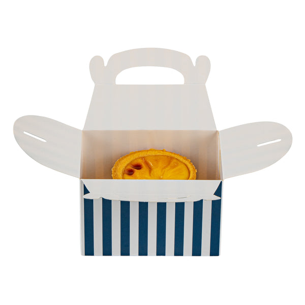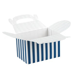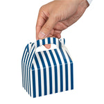 Effortlessly transport chilled treats with charming packaging. Bio Tek Freezer-Safe Gable Gift Boxes provide a stylish and practical solution for carrying desserts, thanks to their built-in handle that ensures comfortable transport of orders. These gable gift boxes are constructed from sturdy paper and feature a freezer-safe design, allowing you to store delicacies for future enjoyment without compromising quality. The eye-catching blue and white stripes add a delightful touch to your presentation, making them ideal kraft paper boxes for parties and events. Measuring 4 inches in length by 2.5 inches in width and height, these cardboard favor boxes are perfect for holding small baked goods or confections. Elevate your foodservice operations by choosing these functional and attractive packaging solutions. Each order includes 100 Bio Tek Freezer-Safe Gable Gift Boxes.