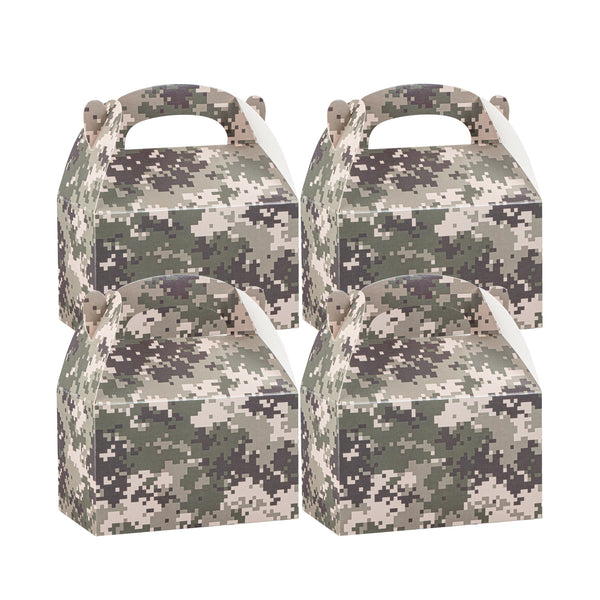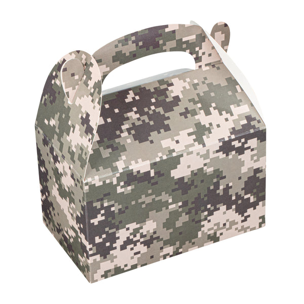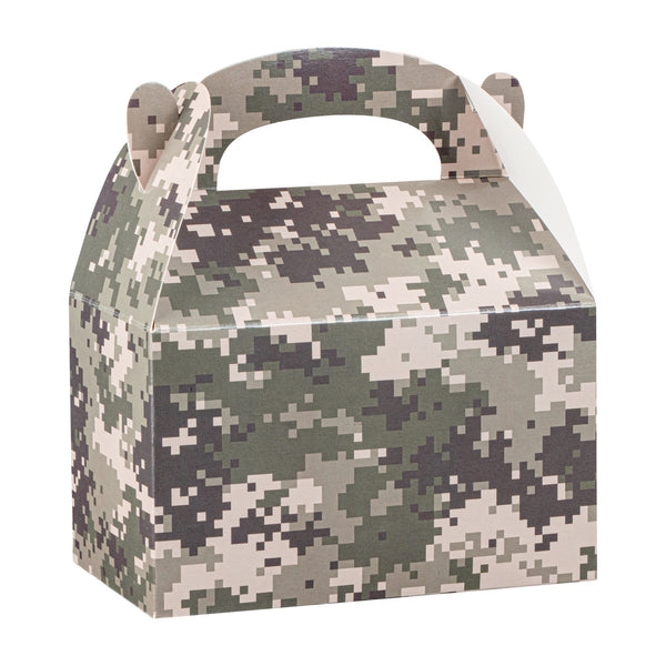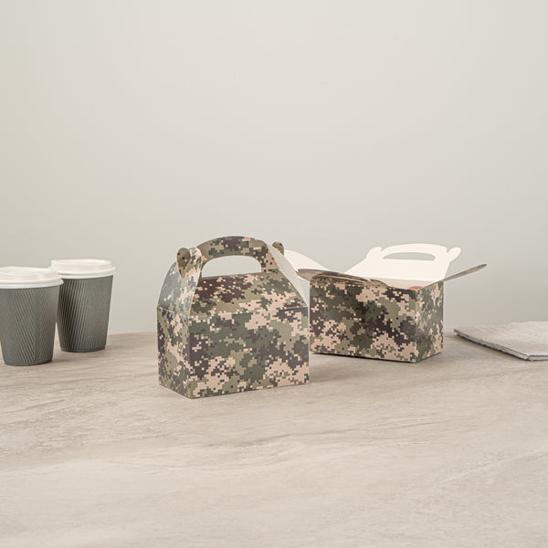 Enhance your presentation with charming camouflage packaging. Bio Tek Freezer-Safe Gable Gift Boxes feature a delightful camouflage pattern, adding charm to your food packaging while ensuring your offerings stand out. These gable gift boxes include a built-in handle, enabling you to carry orders comfortably, making them ideal for catering services and retail operations. With a freezer-safe design, they allow you to store desserts and treats conveniently for later use, ensuring freshness and quality, a perfect choice for wedding favor boxes. Measuring 6 inches in length, 3.5 inches in width, and 3.5 inches in height, these boxes are crafted from sturdy paper, providing a reliable, recyclable, and biodegradable packaging solution. Elevate your events with these versatile cardboard favor boxes, suitable for both hot and cold foods. Each order includes 100 Bio Tek Freezer-Safe Gable Gift Boxes.
