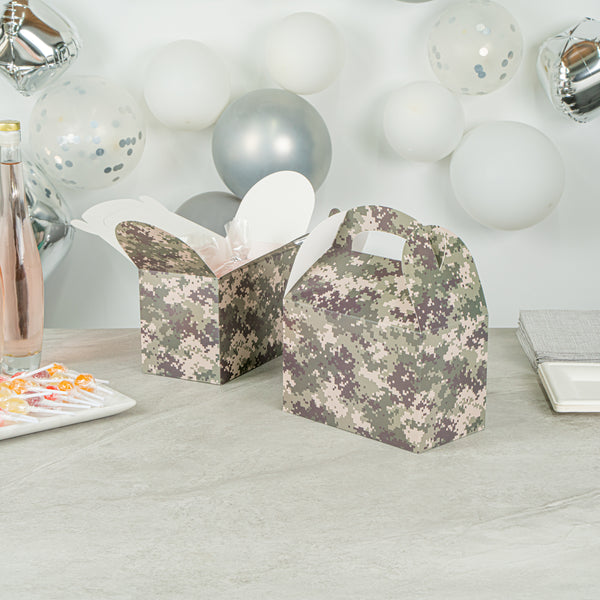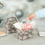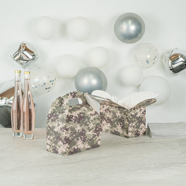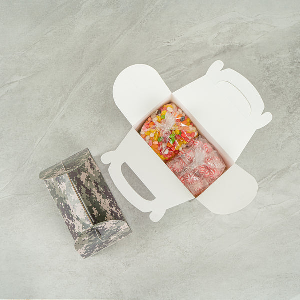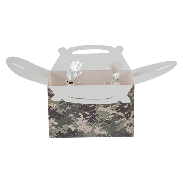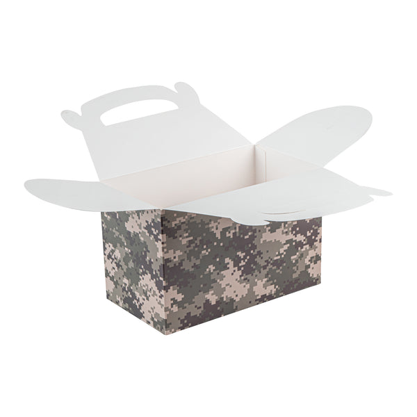Enhance your packaging with charming camouflage flair. Bio Tek Freezer-Safe Gable Gift Boxes feature a distinctive camouflage pattern that adds charm to takeout packaging, making them an excellent choice for unique gift presentation. These kraft paper boxes are designed with a built-in handle, ensuring that carrying orders is comfortable and convenient for your staff and customers alike. Measuring 8.5 inches in length, 4.75 inches in width, and 5.5 inches in height, these boxes are expertly crafted from paper to provide a reliable structure that supports cold food and is commercially Commercially composatble. The freezer-safe design of these cardboard gift boxes allows you to store desserts and frozen snacks without worry, preserving their quality until serving. Perfect for eco-conscious businesses, these boxes are biodegradable and recyclable, aligning with sustainable practices. Elevate your foodservice operations with stylish and functional packaging solutions. Each order includes 100 Bio Tek Freezer-Safe Gable Gift Boxes.