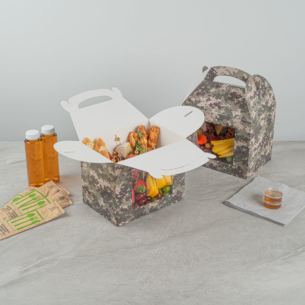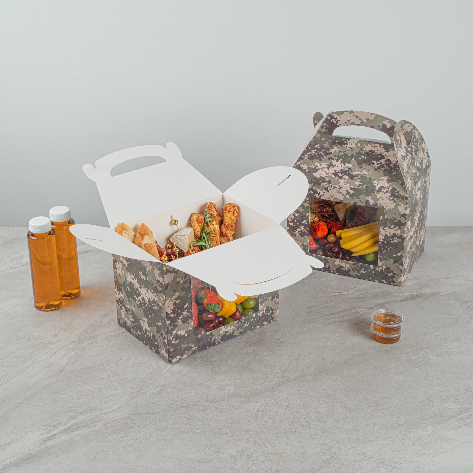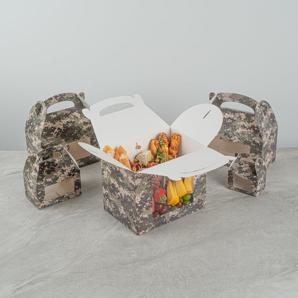 CAMOUFLAGE PAPER GABLE BOX / TAKE OUT CONTAINER - WITH WINDOW