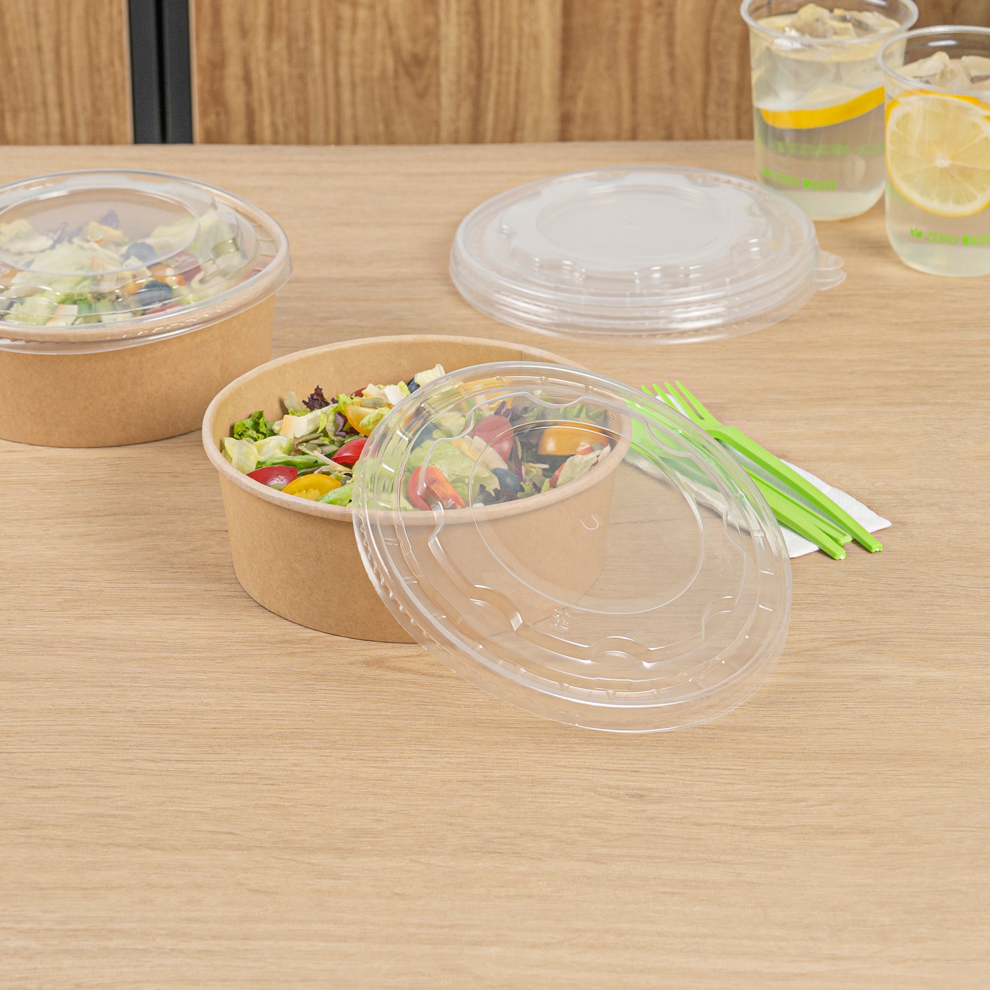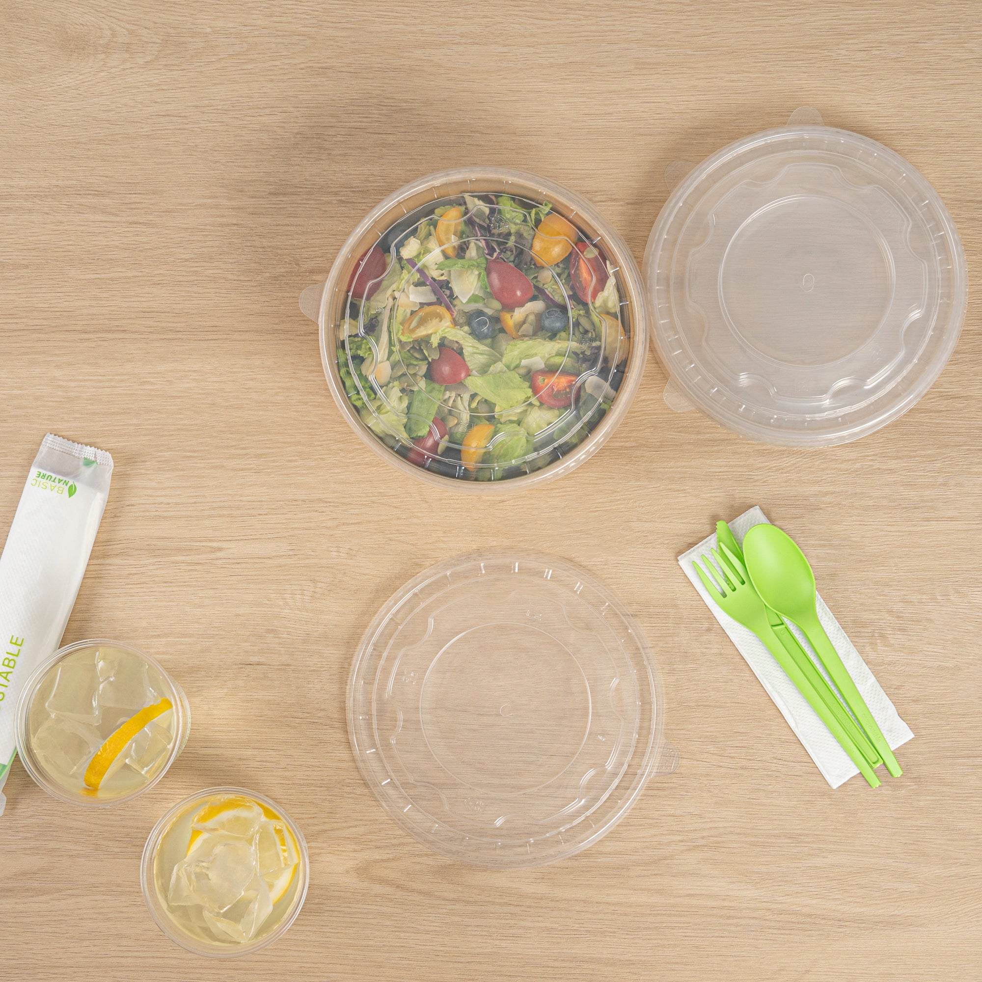 Keep your food orders secure with our Bio Tek Clear Plastic Take Out Container Lids. These plastic lids pair perfectly with our collection of matching Bio Tek containers and form a tight-fitting seal to keep contents intact during transportation. Featuring a crystal-clear finish, these round lids allow for quick and easy visibility of the contents without having to open the container. Crafted from PP plastic, these lids for food containers are heat-resistant and can withstand temperatures up to 248F, perfect for covering hot soups and dishes. Designed to be disposable, these container lids can be discarded after use and help shorten your cleanup time. To reduce your carbon footprint, these disposable lids are recyclable and ideal for eco-conscious foodservice establishments. Measuring 7.25 inches in diameter, these clear lids offer ample coverage. Sold in a 200 count box. Containers are available and sold separately.