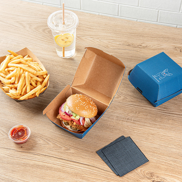 Enjoy the strength and durability of these burger boxes, crafted from premium paper for your satisfaction. They're sure to withstand every journey, keeping your food as intended.
