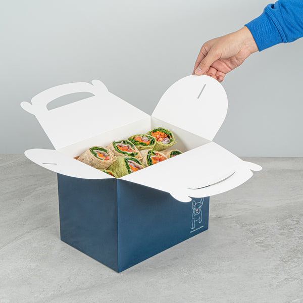 Deliver standout style and convenience with charming packaging solutions. Bio Tek Frenchie Gable Boxes bring a delightful touch to your presentation with their Frenchie bulldog design, enhancing the appeal of your bakery items or take out with paper gable boxes. Featuring a built-in handle, these paper gift boxes ensure comfortable and secure transport of orders, making them indispensable for busy foodservice operations. With a freezer-safe design, these gable favor boxes are perfect for storing treats, allowing you to preserve the freshness of your culinary creations. Measuring 10 inches in length, 7 inches in width, and 8 inches in height, these boxes are crafted from compostable paper, supporting sustainable practices. Enhance your packaging strategy with these versatile paper boxes that prioritize both sustainability and functionality. Each order includes 100 Bio Tek Frenchie Gable Boxes.
