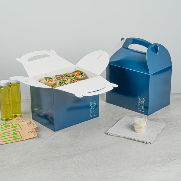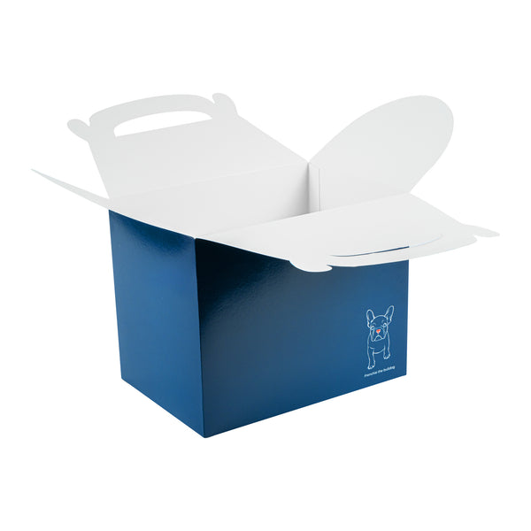 Deliver standout style and convenience with charming packaging solutions. Bio Tek Frenchie Gable Boxes bring a delightful touch to your presentation with their Frenchie bulldog design, enhancing the appeal of your bakery items or take out with paper gable boxes. Featuring a built-in handle, these paper gift boxes ensure comfortable and secure transport of orders, making them indispensable for busy foodservice operations. With a freezer-safe design, these gable favor boxes are perfect for storing treats, allowing you to preserve the freshness of your culinary creations. Measuring 10 inches in length, 7 inches in width, and 8 inches in height, these boxes are crafted from compostable paper, supporting sustainable practices. Enhance your packaging strategy with these versatile paper boxes that prioritize both sustainability and functionality. Each order includes 25 Bio Tek Frenchie Gable Boxes.