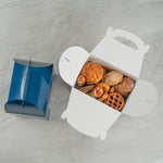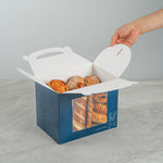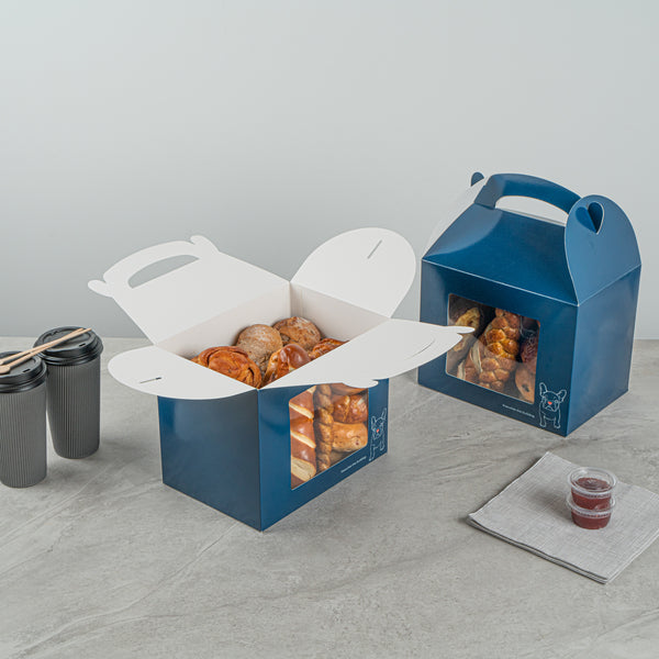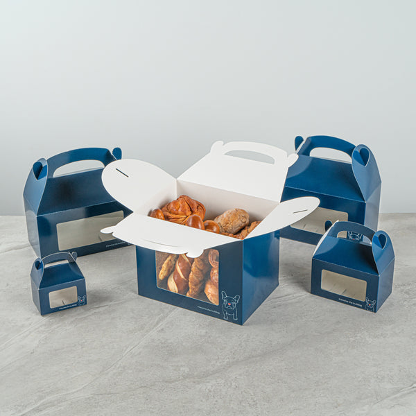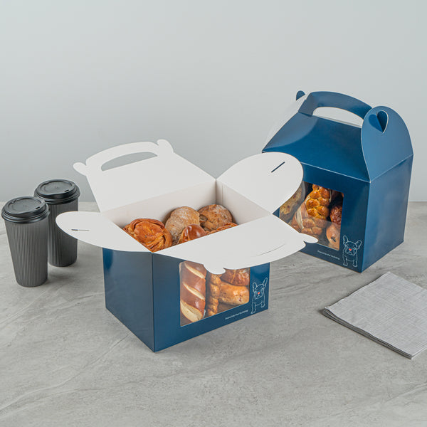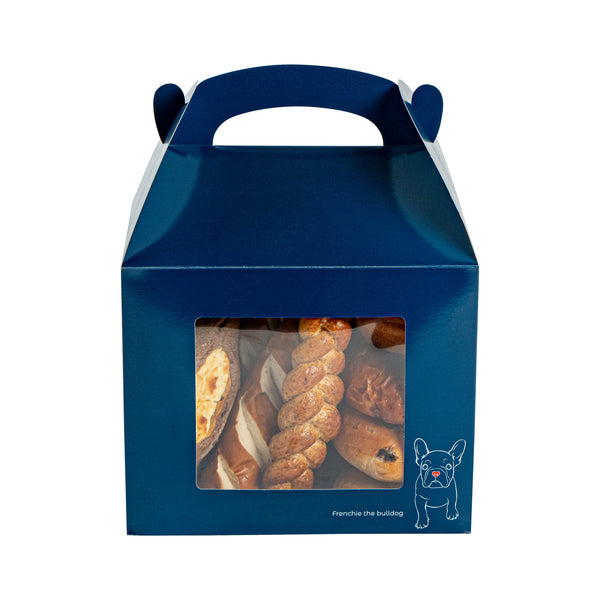 Showcase your delectable creations effortlessly with these kraft paper gift boxes. The Bio Tek Frenchie Paper Gable Boxes / Take Out Containers feature an integrated plastic window that beautifully reveals the contents inside, making it easy for customers to select their desired treats. With a built-in ergonomic handle, these blue paper boxes ensure the comfortable transport of orders, enhancing the efficiency of your service. Their freezer-safe design allows you to preserve treats for longer, accommodating the needs of foodservice professionals who require flexible storage solutions. Measuring 10 inches in length, 7 inches in width, and 8 inches in height, these gable gift boxes are ideal for bakeries and cafes seeking versatile packaging options. Made from recyclable paper, they support sustainable practices in the foodservice industry. Invest in these party favor boxes to elevate your presentation and streamline your operations. Sold in a 25 count box.