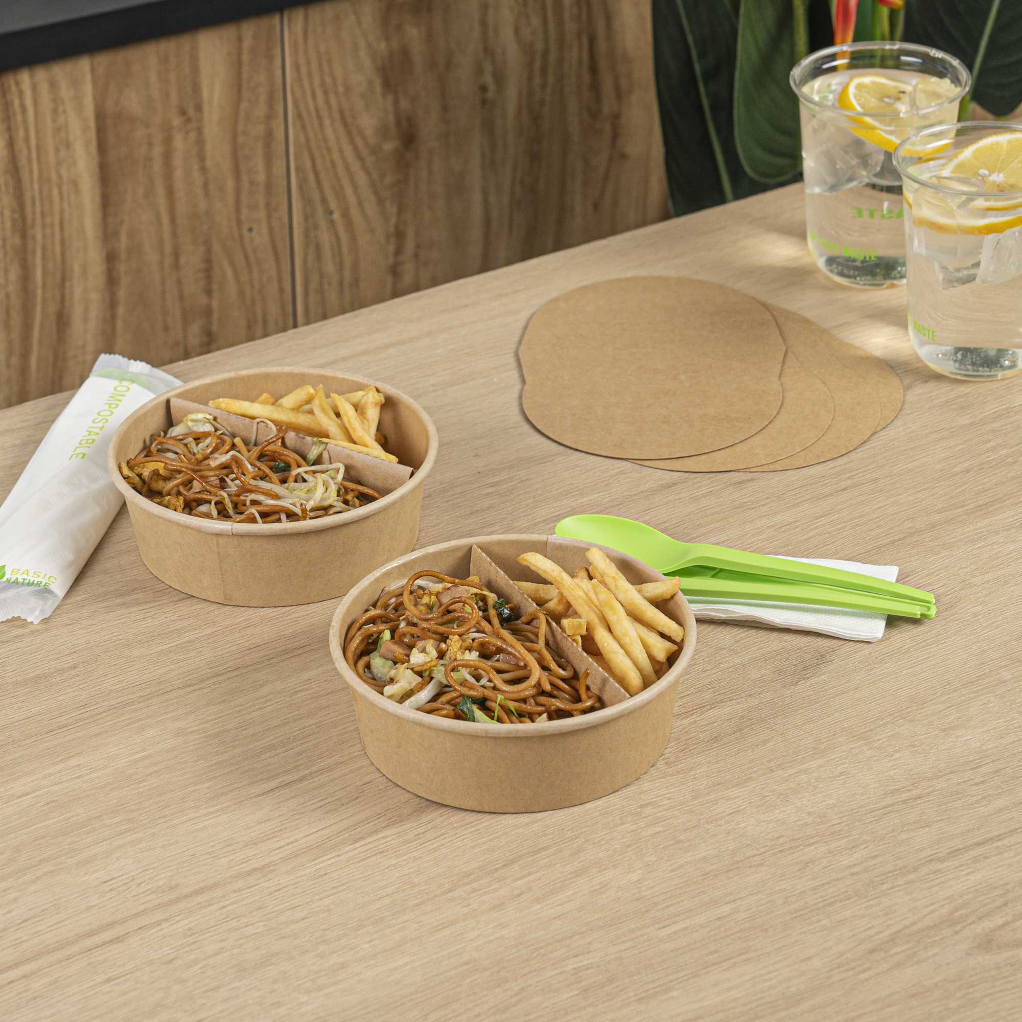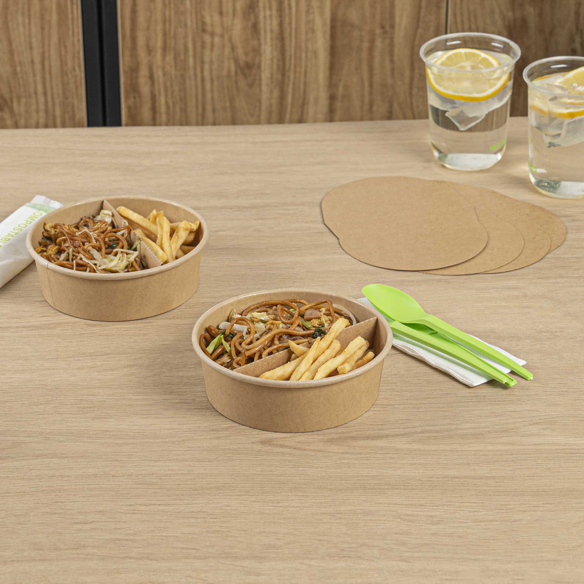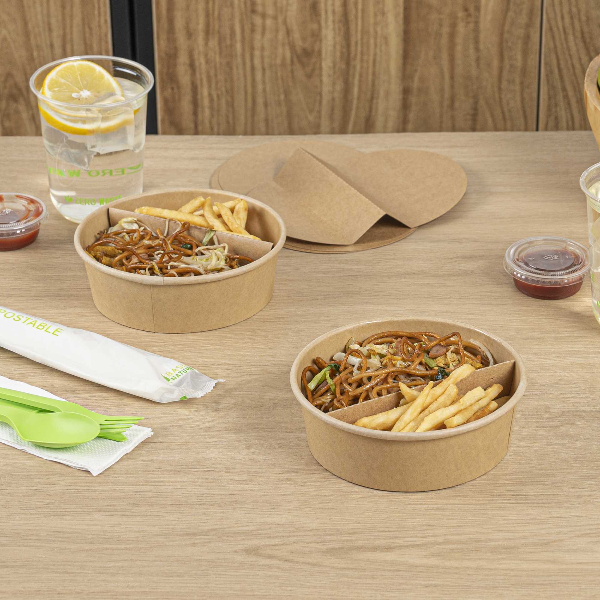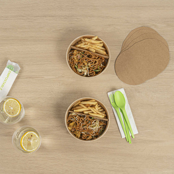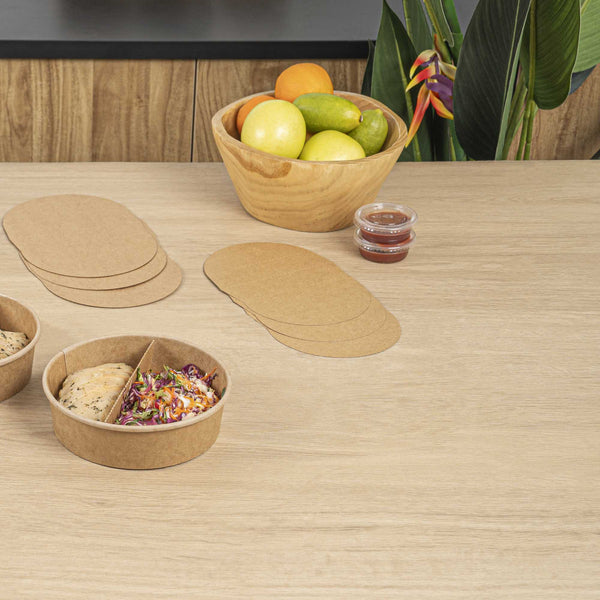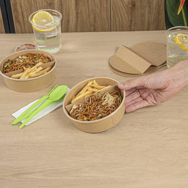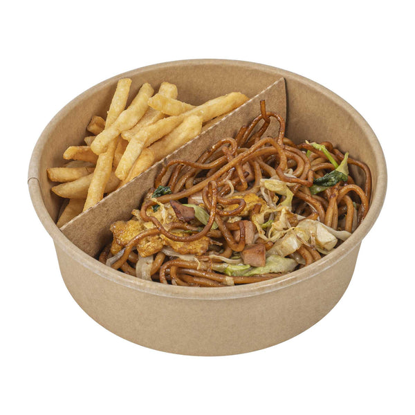 Enhance your foodservice experience with our Bio Tek Kraft Paper 2-Compartment Inserts. These divider inserts pair perfectly with our collection of matching Bio Tek take out containers, providing an ideal solution for organized and efficient food packaging. Made to avoid flavors from mixing, these partition food inserts have a 2-compartment design, ensuring a neat and appetizing presentation for every meal. These paper inserts are easy to assemble and fit securely into containers, maintaining food presentation during transit. Designed to be microwavable, these paper inserts for food containers allow you to reheat meals. Crafted from premium paper, these kraft paper inserts are suitable for holding hot and cold food items. To facilitate an efficient cleanup, these disposable paper dividers can be discarded after use. Measuring 9.6 inches in length by 5.9 inches in width, these paper inserts for food containers provide ample space for various food items. Sold in a 50 count box.
