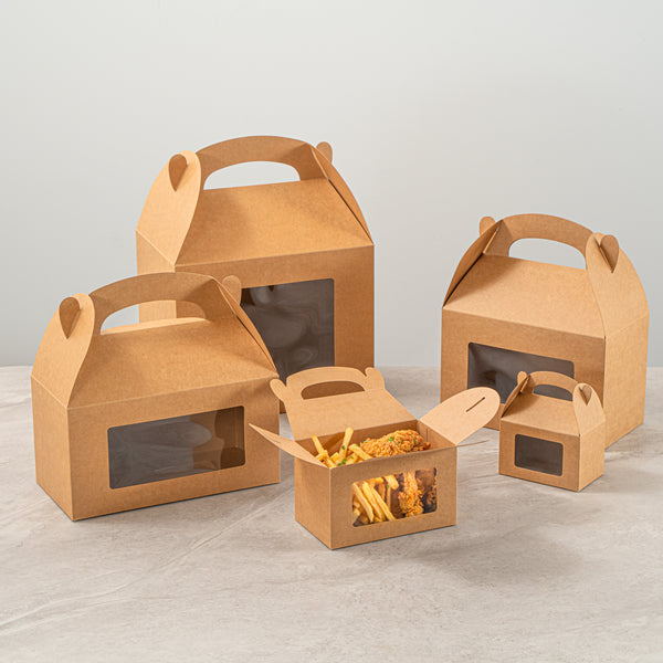 KRAFT PAPER GABLE BOX / TAKE OUT CONTAINER - GREASEPROOF, WITH WINDOW