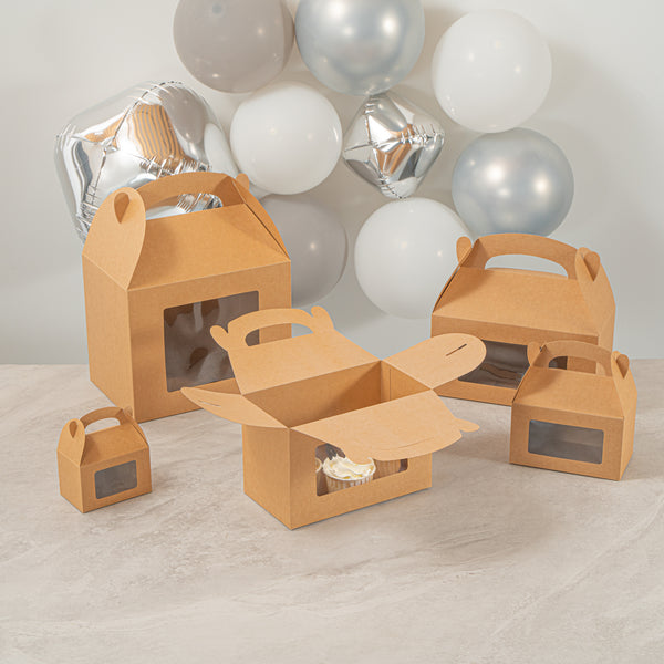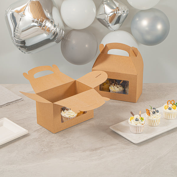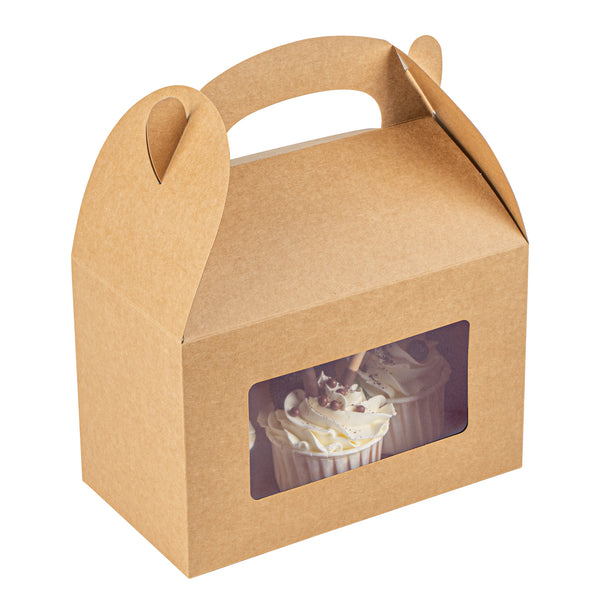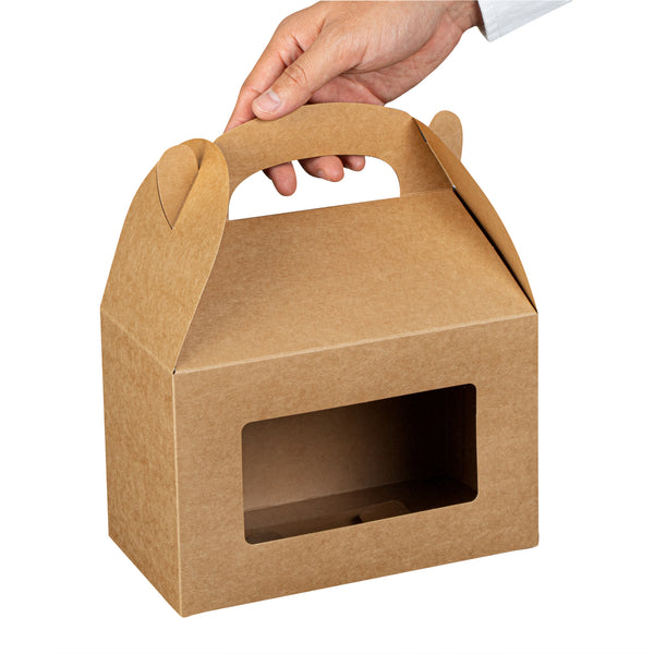 Keep your food orders pristine with greaseproof gable gift boxes. Bio Tek Kraft Paper Gable Boxes / Take Out Containers feature a greaseproof lining that keeps packaging stain-free and clean, ensuring a polished presentation for your take out and delivery services. The integrated plastic window beautifully showcases the contents, enticing customers to make a purchase and boosting sales in your bakery or cafe. With the built-in handle, these kraft paper boxes allow you to carry orders comfortably, enhancing the efficiency and professionalism of your service. Crafted from sturdy paper, these window gift boxes are recyclable, making them an eco-friendly choice for environmentally-conscious businesses. Measuring 8.5 inches in length, 4.75 inches in width, and 5.5 inches in height, they are perfect for a variety of food items. Elevate your packaging with these practical and attractive boxes. Sold in a 100 count box.