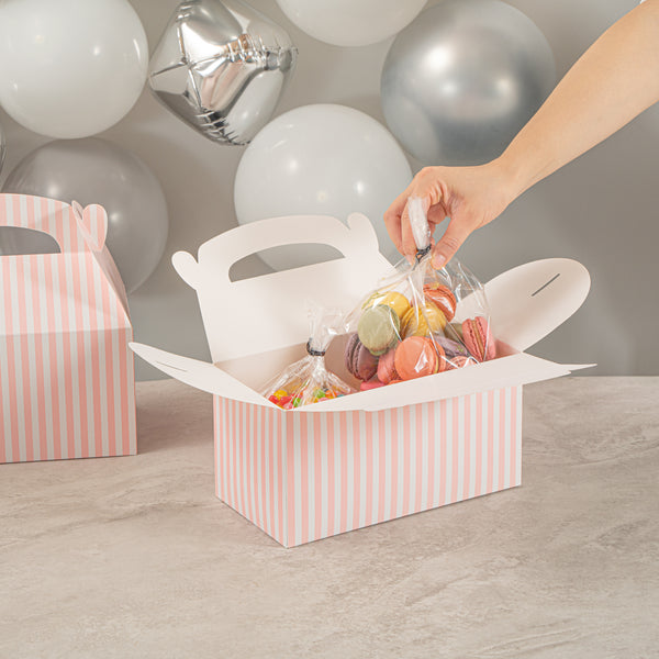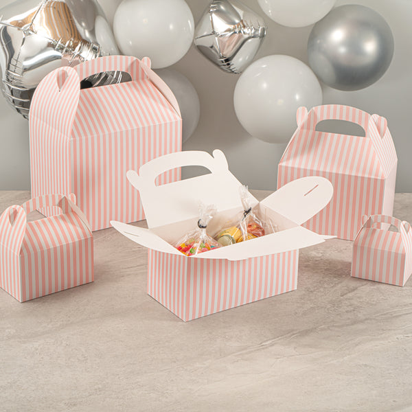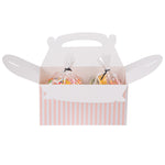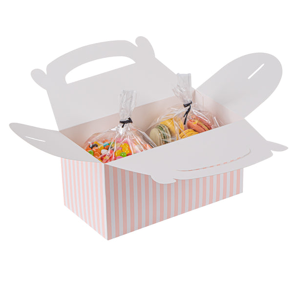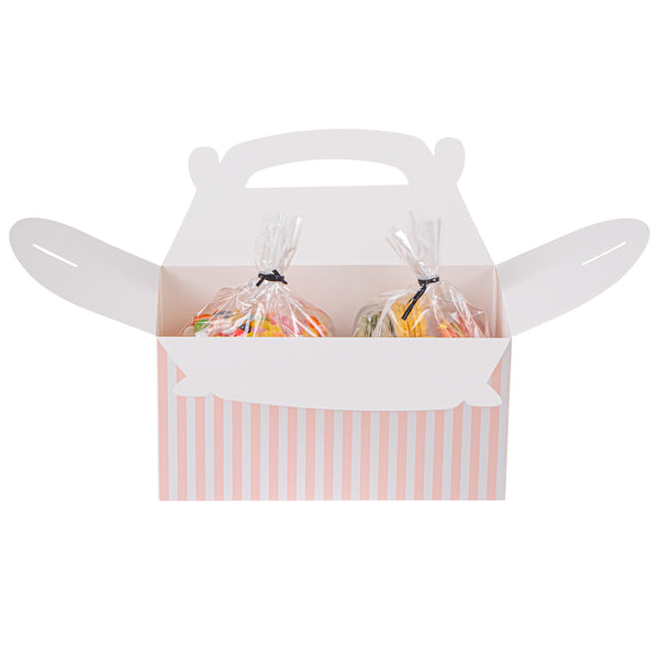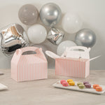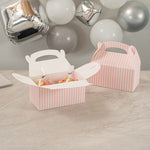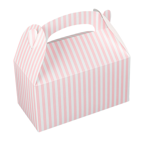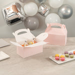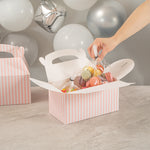 PINK & WHITE STRIPE PAPER GABLE BOX / TAKE OUT CONTAINER - COMPOSTABLE