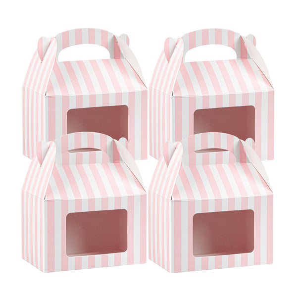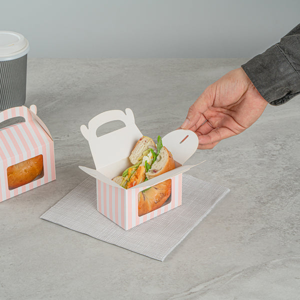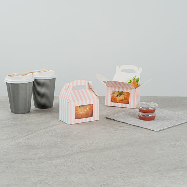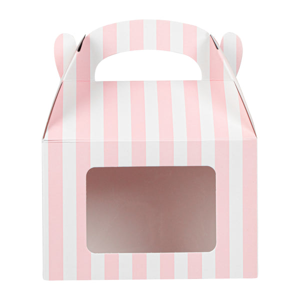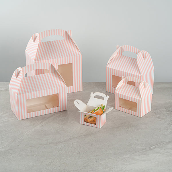 PINK & WHITE STRIPE PAPER GABLE BOX / TAKE OUT CONTAINER - WITH WINDOW