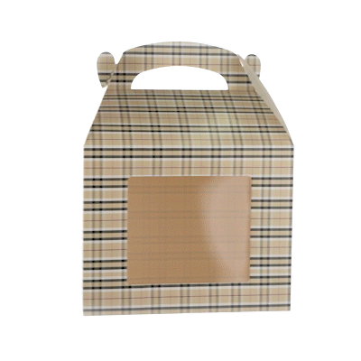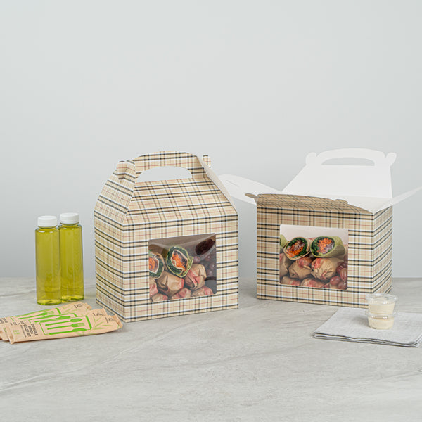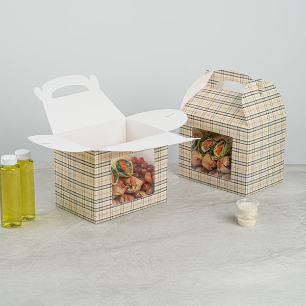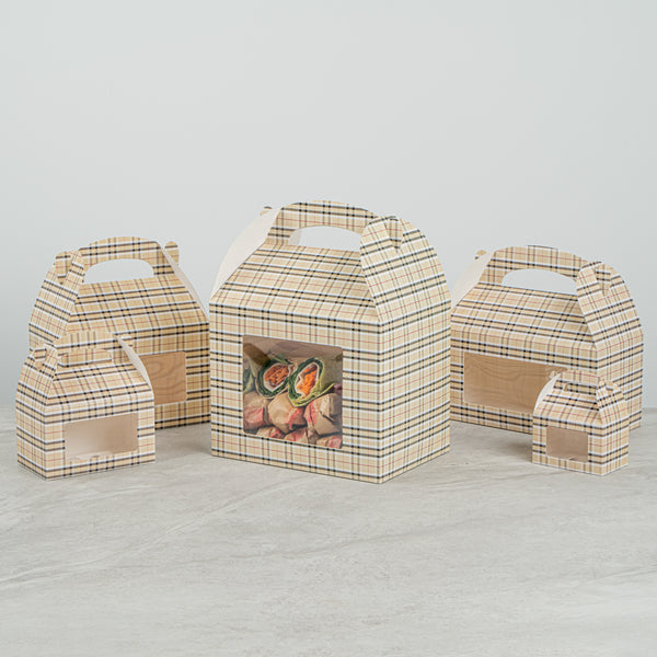 PLAID PAPER GABLE BOX / TAKE OUT CONTAINER - WITH WINDOW