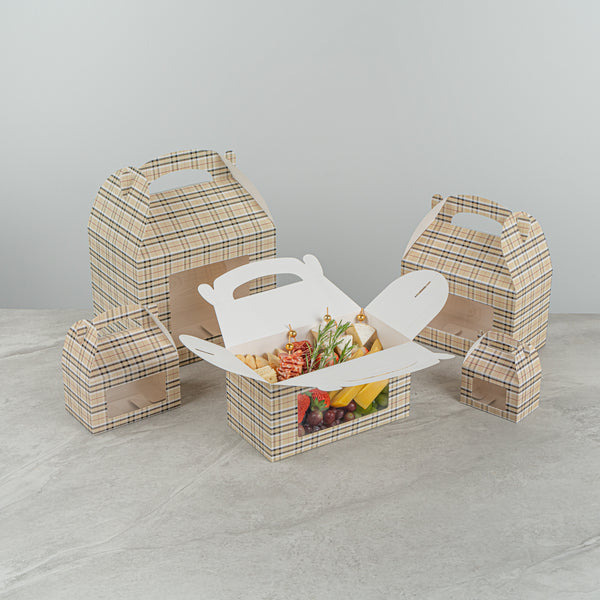 PLAID PAPER GABLE BOX / TAKE OUT CONTAINER - WITH WINDOW