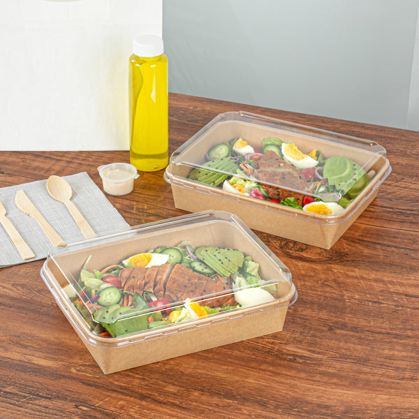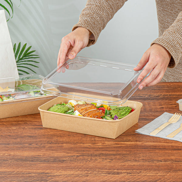 Ensure seamless transport with the Bio Tek Clear Plastic Takeout Container Lid. This plastic takeout lid, measuring 10.1 inches in length and 7.8 inches in width, offers a secure fit on 78-ounce serving containers, effectively preventing spills and maintaining freshness. Its waterproof and oil-resistant design keeps contents safe from messy leaks, making it an essential choice for high-paced foodservice environments seeking a reliable leak-proof container lid. Notably, its hot and cold universal feature accommodates a variety of menu items, from salads to fried foods, ensuring versatility in your kitchen operations. Constructed from plastic, this lid is freezer-safe, making it ideal for storing pre-prepped meals without compromising quality. Enhance your catering or takeout services with this recyclable clear takeout container lid, designed for durability and easy content identification. Each order includes 50 Bio Tek Clear Plastic Takeout Container Lids.