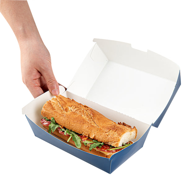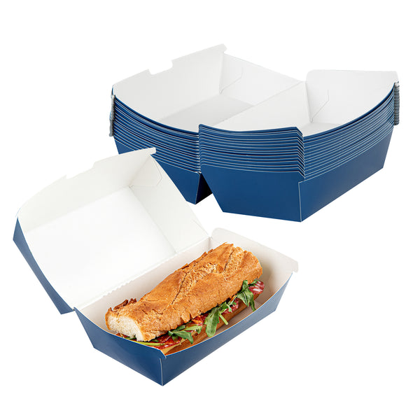 The greaseproof design of these paper hot dog containers retains any mess in your take out food experience. Say goodbye to soggy containers and oily leaks.