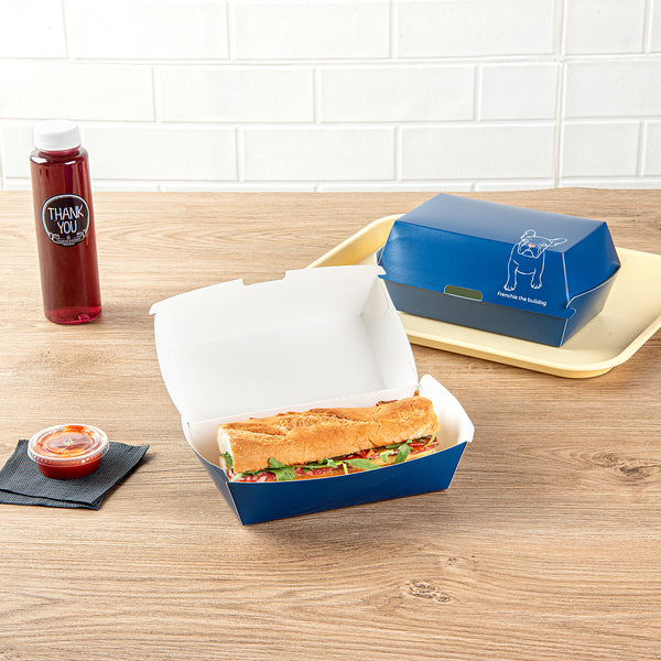 RECTANGLE FRENCHIE PAPER HOT DOG / SANDWICH CLAMSHELL CONTAINER