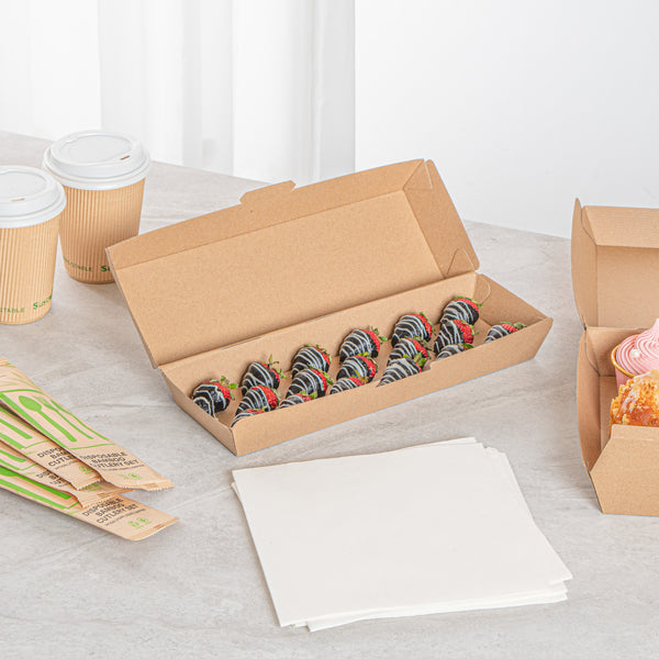 Ensure seamless meals on the go with a corrugated takeout container. The Bio Tek Grease-Resistant Corrugated Takeout Container, made from sturdy corrugated kraft paper, boasts a generous 11.3 inches in length, providing an eco-friendly solution for packaging a variety of dishes. Its grease-resistant lining ensures that oils and sauces remain contained, offering a mess-free dining experience. The innovative E-Flute technology retains heat and crispness, making it ideal for to-go meals like burgers and fries, while strategically placed side vents maintain the freshness of your food during transport. This paper clamshell box features a secure tab-lock closure that prevents spills, ensuring safe delivery to your customers. Nests easily for efficient storage, this takeout box supports busy kitchen environments. Elevate your foodservice offerings with this reliable and sustainable packaging solution. Each order includes 100 Bio Tek Grease-Resistant Corrugated Takeout Containers.