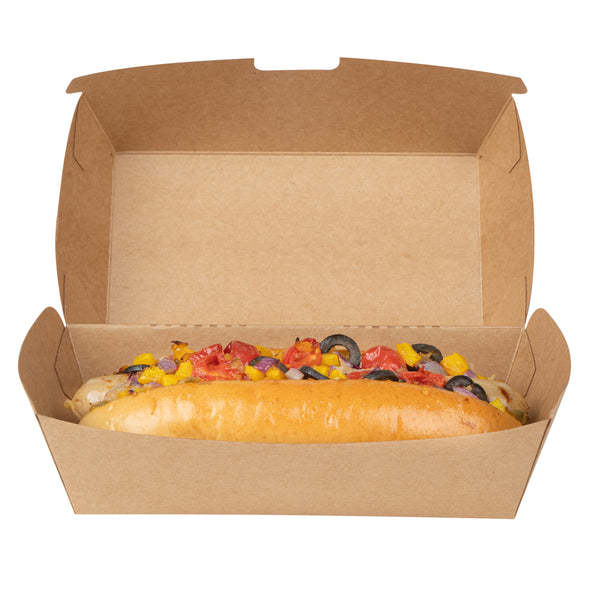 RECTANGLE KRAFT PAPER HOT DOG / SANDWICH CLAMSHELL CONTAINER