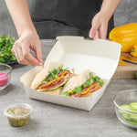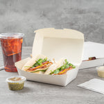 Made with robust paper, these disposable to go boxes are perfect for holding various food items without compromising on their structure. They are ideal for food trucks, picnics, and more.