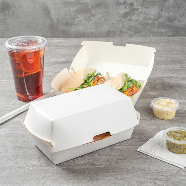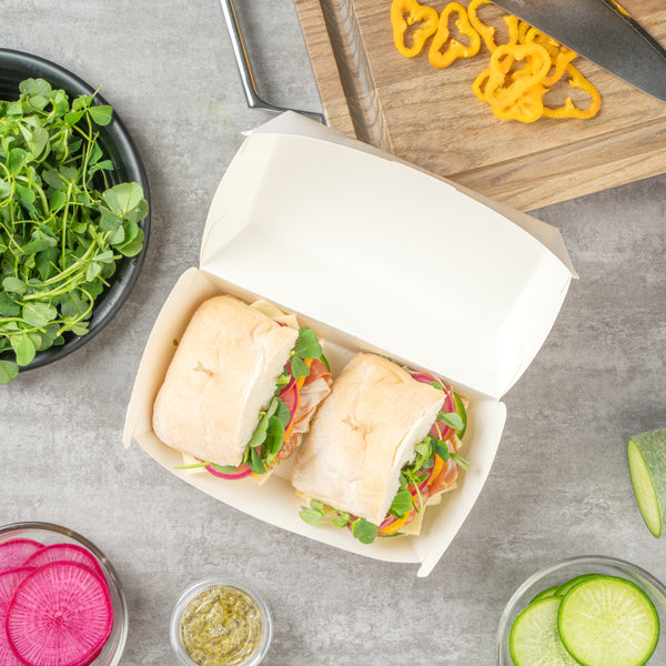 RECTANGLE WHITE PAPER HOT DOG / SANDWICH CLAMSHELL CONTAINER