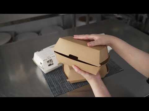 These paper clamshell to go containers boast a tab lock closure, ensuring your food stays fresh and well-protected. Reliable and fast-locking design.