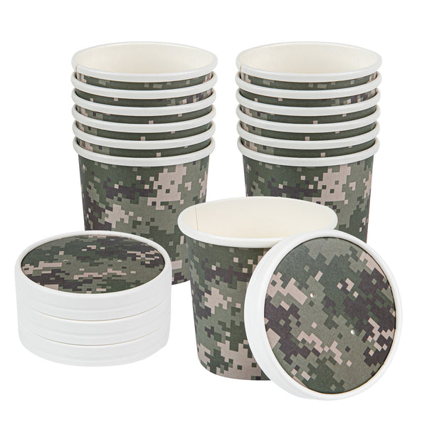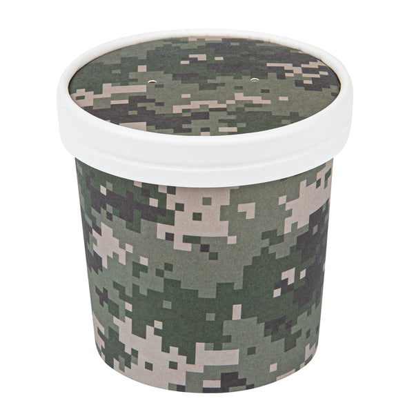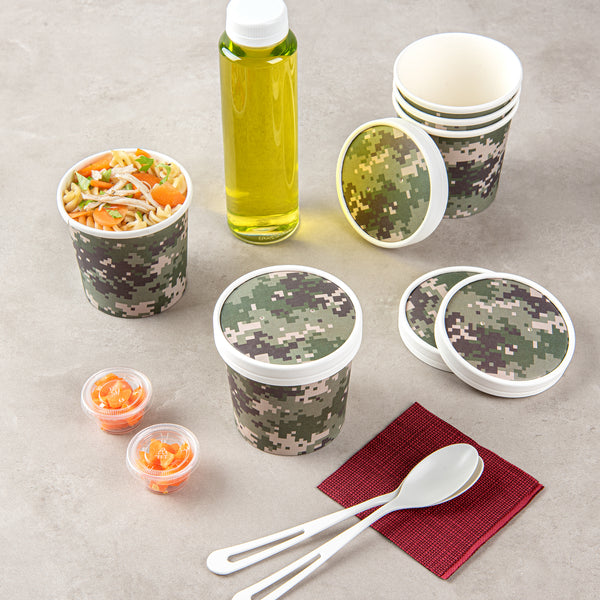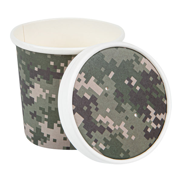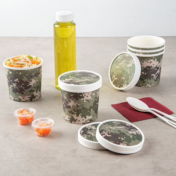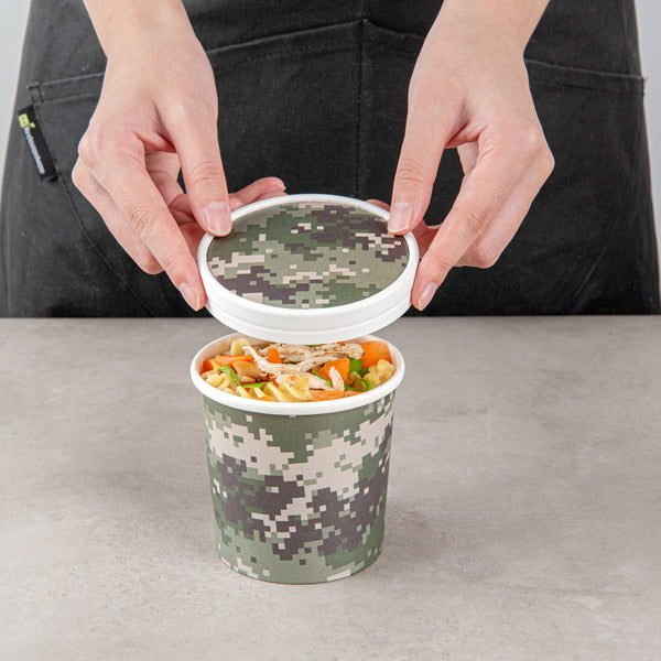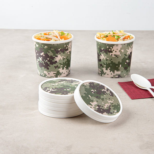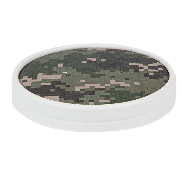 ROUND CAMOUFLAGE PAPER SOUP CONTAINER LID - FITS 12 OZ