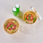 Our food containers are made from recyclable paper to easily dispose of boxes in a nature-friendly way. Don’t worry about washing dirty containers!