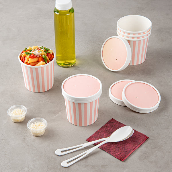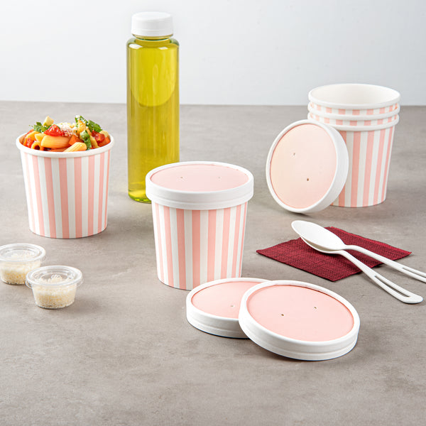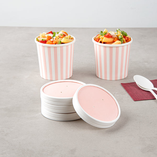 ROUND PINK PAPER SOUP CONTAINER LID - FITS 12 OZ