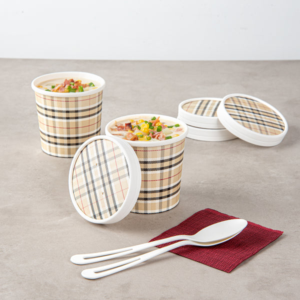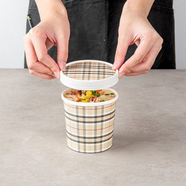 ROUND PLAID PAPER SOUP CONTAINER LID - FITS 12 OZ