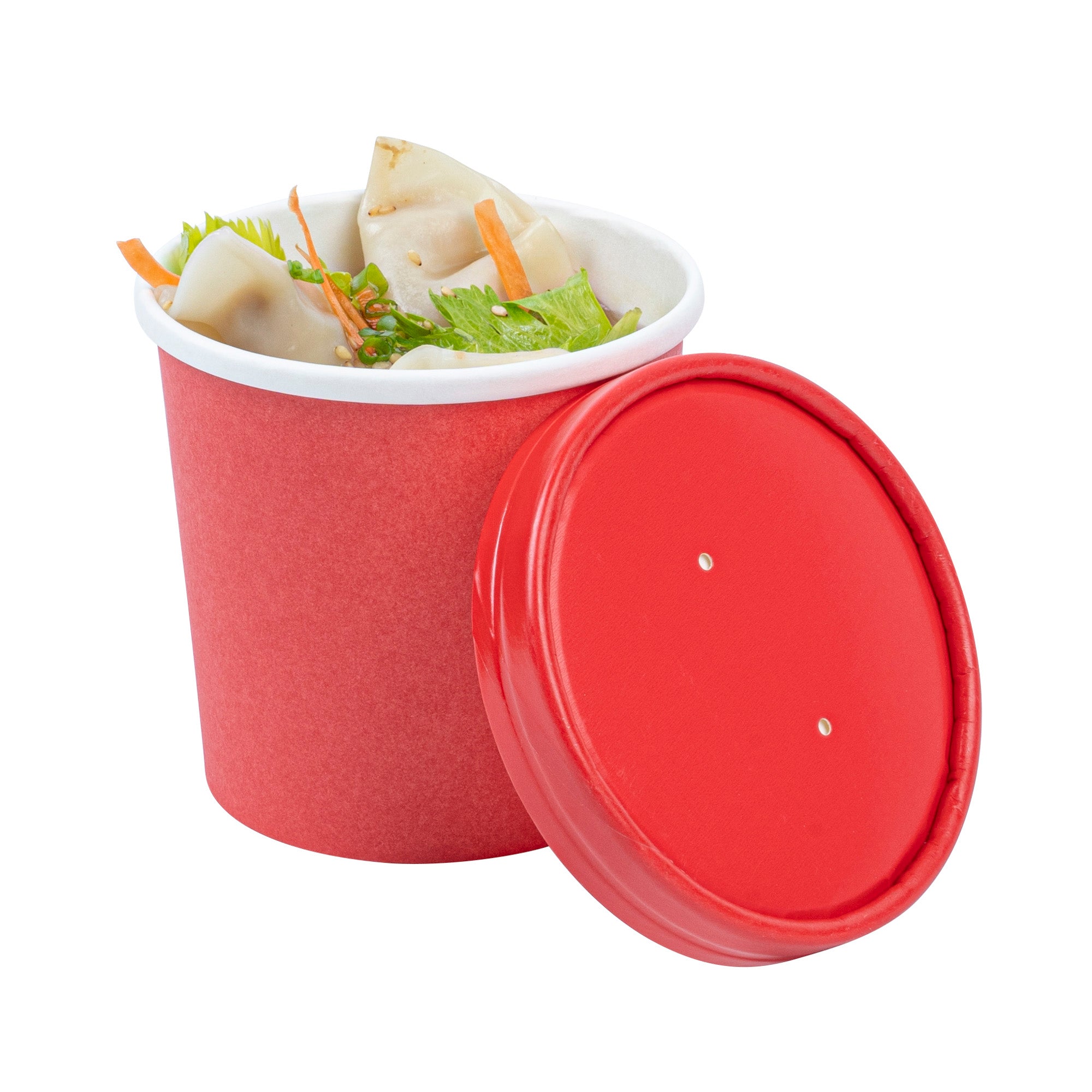 ROUND RED PAPER SOUP CONTAINER LID - FITS 12 OZ