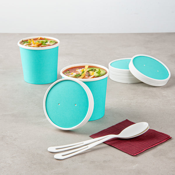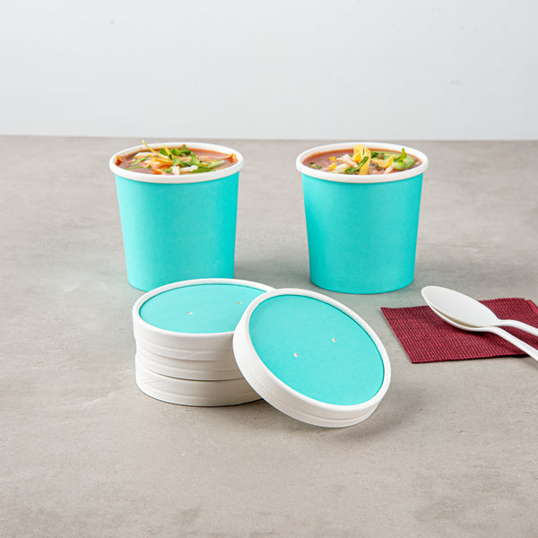 ROUND TURQUOISE PAPER SOUP CONTAINER LID - FITS 12 OZ