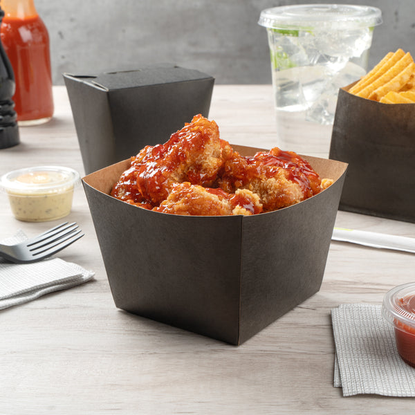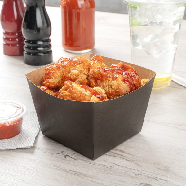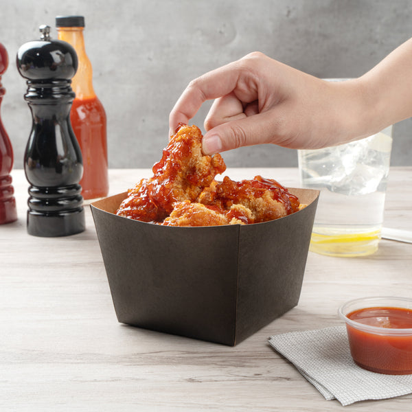 Designed for hot or cold food, these paper food boxes can hold pretzels, popcorn, or chicken wings. Serve guests with any type of snack.