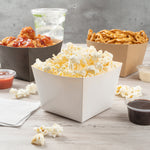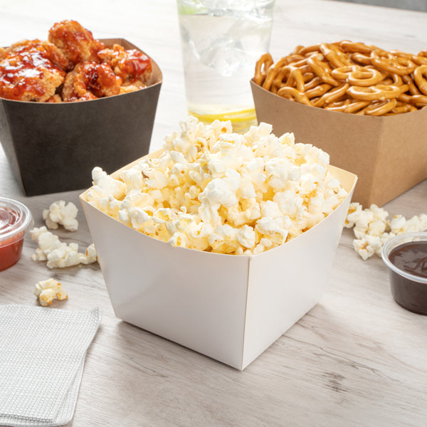 Designed for hot or cold food, these paper food boxes can hold pretzels, popcorn, or chicken wings. Serve guests with any type of snack.