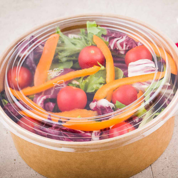 Provide fresh and secure takeout salad orders with the Bio Tek Salad Container Round Clear Plastic Lids. Constructed from durable, high-quality plastic, these clear lids securely seal our 44-ounce Bio Salad Containers to keep contents intact (SKU: RWA0346-50). These clear plastic lids allow for quick and easy monitoring of salad levels through their crystal-clear finish. To create an impenetrable barrier against leaks and spills for dependable transport, these round lids fit tightly onto their coordinating containers with ease. To shorten the cleanup time, these transparent lids are disposable. These container lids simplify handling and passing out of takeout salad orders. Each container lid measures 7.25 inches in diameter by 0.5 inches in height. Sold in a 50 count box. Lids and containers are sold separately.