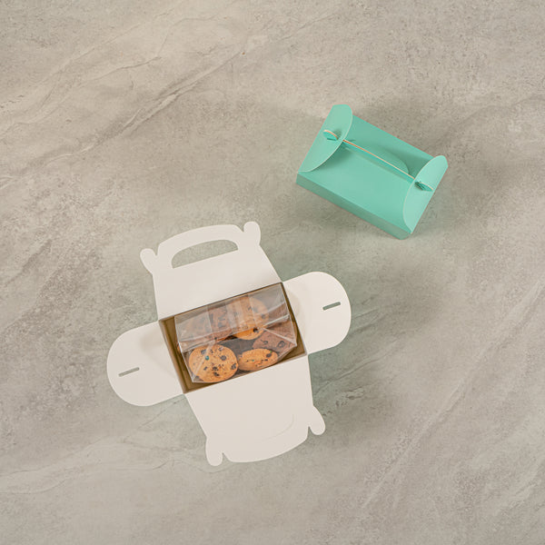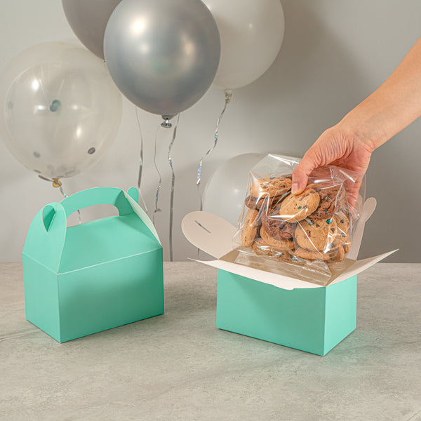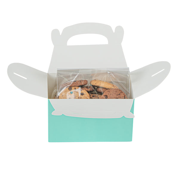 Present your delightful creations with elegance and ease. Bio Tek Freezer-Safe Gable Gift Boxes, crafted from sturdy paper and adorned with a charming turquoise finish, elevate your packaging with a touch of sophistication that enhances the appeal of gable gift boxes. These small gift boxes feature a built-in handle, making it simple and comfortable to transport orders, ensuring your products arrive safely and beautifully. Designed with a freezer-safe capability, these cardboard favor boxes allow you to store treats without compromise, preserving the quality of your confections. Measuring 6 inches in length, 3.5 inches in width, and 3.5 inches in height, these boxes are versatile for various occasions and foodservice needs. Their recyclable and biodegradable properties offer an eco-friendly solution, aligning with sustainable practices. Perfect for caterers and bakery owners seeking reliable and stylish packaging, these boxes meet cold and hot food requirements seamlessly. Each order includes 25 Bio Tek Freezer-Safe Gable Gift Boxes.