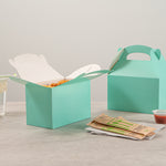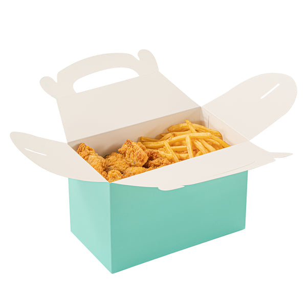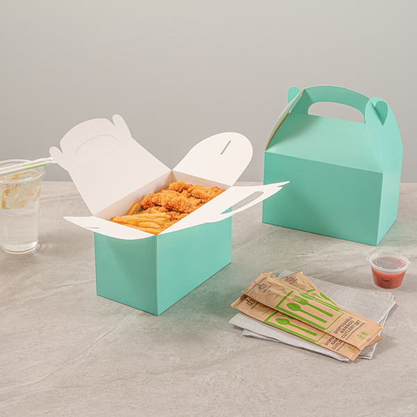 Enhance your packaging game with eco-friendly, stylish solutions. Bio Tek Kraft Paper Gift Boxes feature a vibrant turquoise finish that adds charm to any takeout packaging, making them ideal for showcasing your culinary creations. These kraft paper gift boxes are equipped with a built-in handle that ensures a comfortable and secure grip, allowing you to carry orders with ease, which is particularly useful in bustling foodservice environments. The freezer-safe design of these cardboard favor boxes efficiently preserves desserts and cold goods, maintaining their freshness and quality until they reach your customers. Crafted from recyclable and biodegradable paper, these wedding favor boxes offer a sustainable choice for environmentally-conscious businesses. Elevate your catering services or retail offerings with these versatile boxes. Each order includes 100 Bio Tek Kraft Paper Gift Boxes.