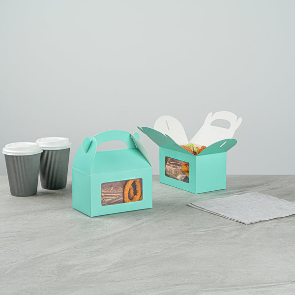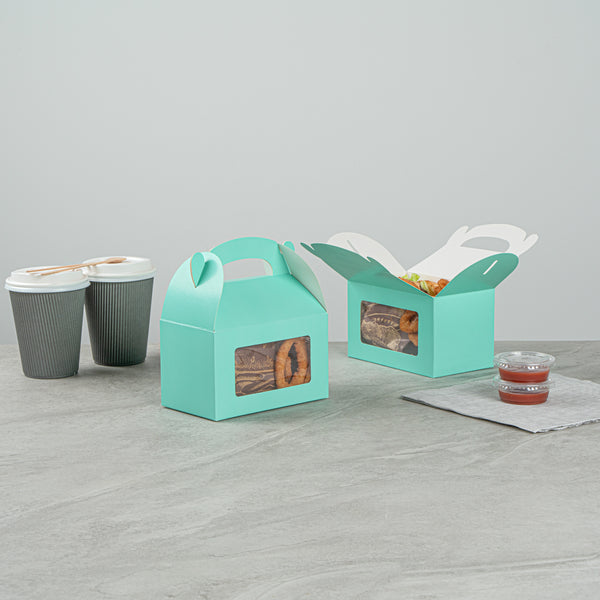 TURQUOISE PAPER GABLE BOX / TAKE OUT CONTAINER - WITH WINDOW