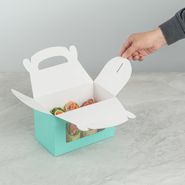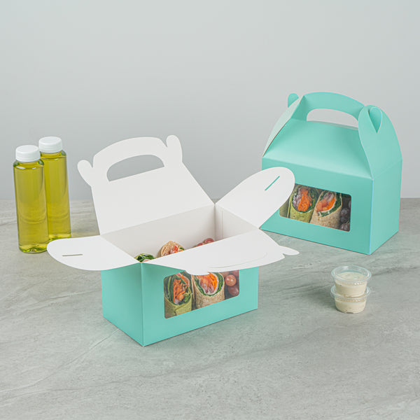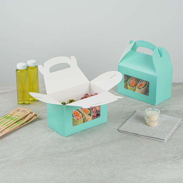 TURQUOISE PAPER GABLE BOX / TAKE OUT CONTAINER - WITH WINDOW