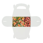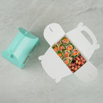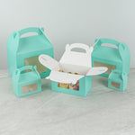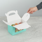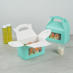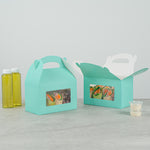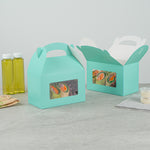 Showcase your culinary creations stylishly with kraft paper gift boxes. Bio Tek Turquoise Paper Gable Boxes / Take Out Containers feature an integrated plastic window that offers enticing product previews, allowing customers to view the delectable treats inside. These blue wedding favor boxes come with a built-in handle, providing a comfortable carrying experience for guests and catering staff alike. With a freezer-safe design, these gift boxes with plastic window facilitate efficient treat storage, ensuring your desserts stay fresh and ready to serve. Measuring 8.5 inches in length, 4.75 inches in width, and 5.5 inches in height, these recyclable paper boxes are both cold and hot food friendly, making them versatile for various applications. Elevate your event presentations and reinforce your commitment to quality packaging. Sold in a 25 count box.