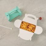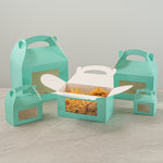 Enhance presentation and convenience with stylish kraft paper gable boxes. The Bio Tek Turquoise Paper Gable Boxes / Take Out Containers feature an integrated plastic window that offers enticing content previews, making them perfect for showcasing your culinary creations. With their vibrant blue color and dimensions of 9.5 inches in length, 5 inches in width, and 5 inches in height, these turquoise gift boxes are both functional and eye-catching. The built-in handle provides comfortable order carrying, ideal for busy caterers and foodservice professionals needing reliable cardboard gable boxes. Crafted from durable paper, they are recyclable and freezer-safe, enabling treat storage and preservation without compromising sustainability. Elevate your packaging solutions with these versatile boxes, enhancing customer satisfaction and operational efficiency. Sold in a 25 count box.
