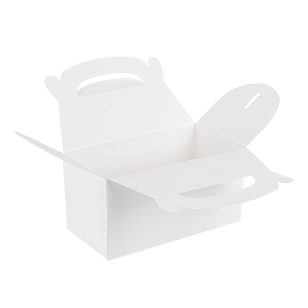 Maintain the integrity of your treats with greaseproof protection. Bio Tek Greaseproof Gable Gift Boxes feature a greaseproof lining that effectively prevents oils from seeping through, ensuring your food quality remains impeccable. These paper treat boxes are equipped with a built-in handle, making it easy and comfortable to carry take out orders. The freezer-safe design allows you to conveniently store treats and preserve their freshness, making them ideal as wedding favor boxes to store desserts ahead of events. Measuring 9.5 inches in length, 5 inches in width, and 5 inches in height, these white boxes are crafted from sturdy paper that is both cold food friendly and recyclable, offering a sustainable option for your catering needs. Elevate your food presentation and service efficiency with these versatile gable gift boxes. Each order includes 25 Bio Tek Greaseproof Gable Gift Boxes.