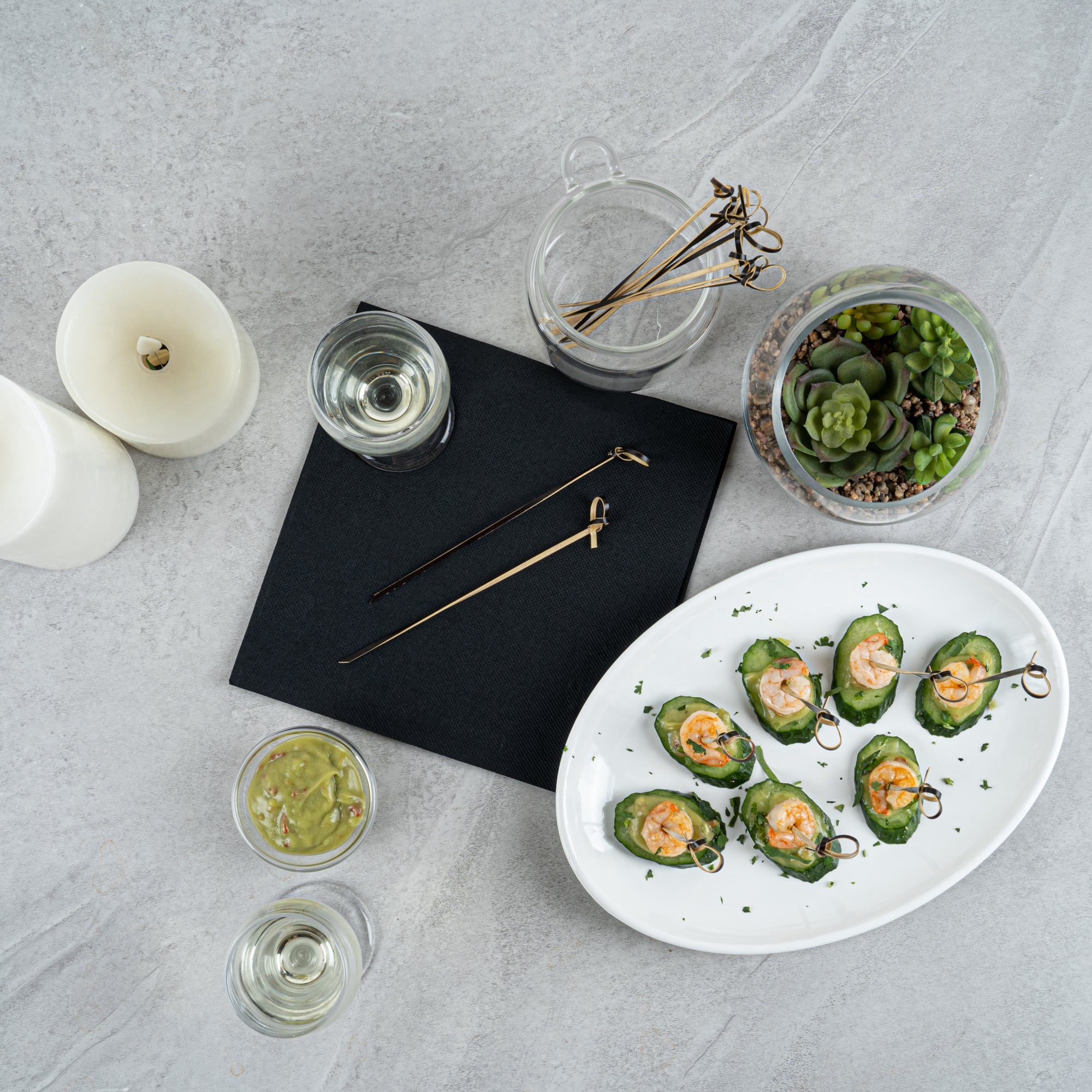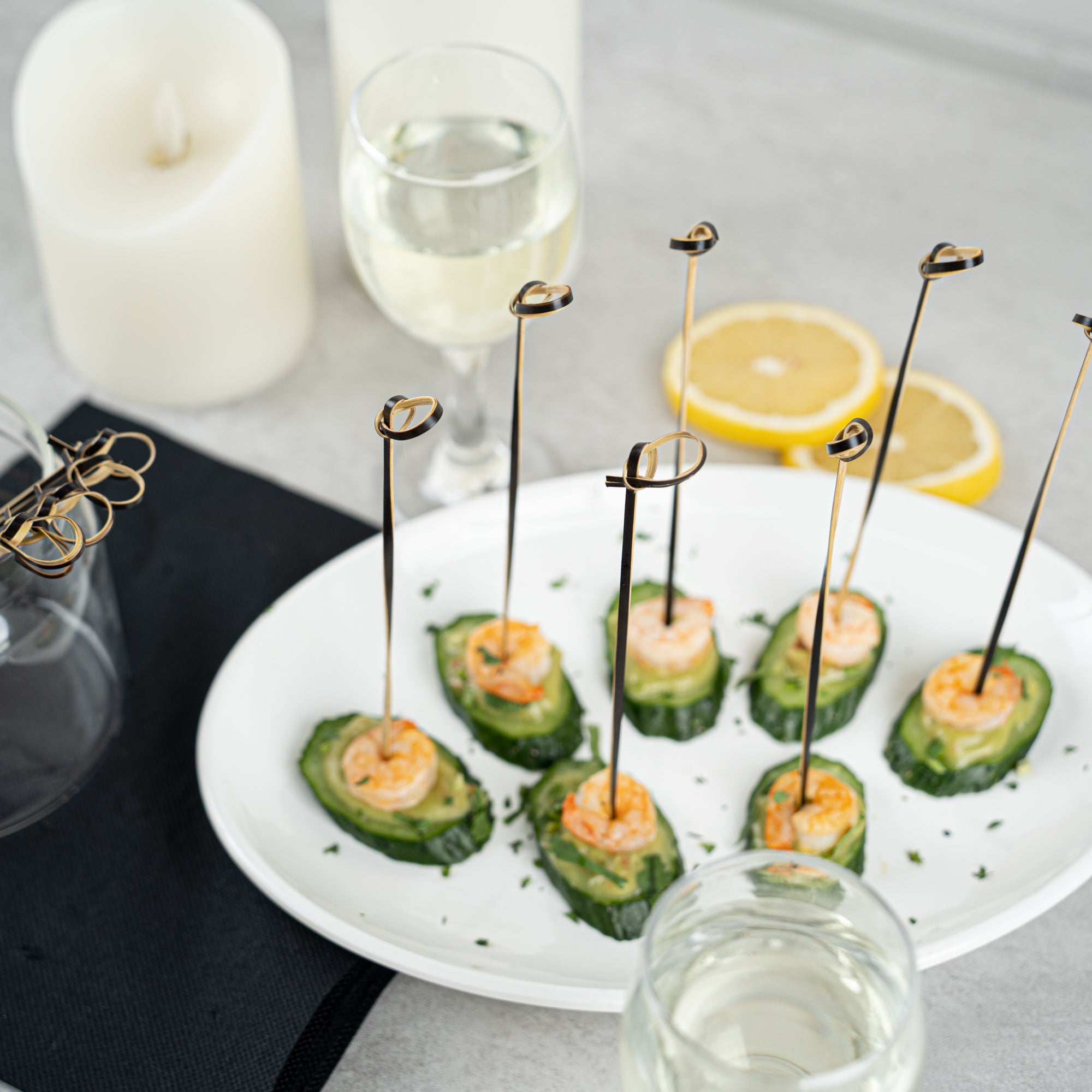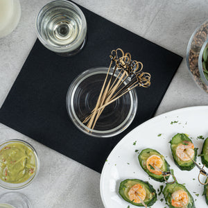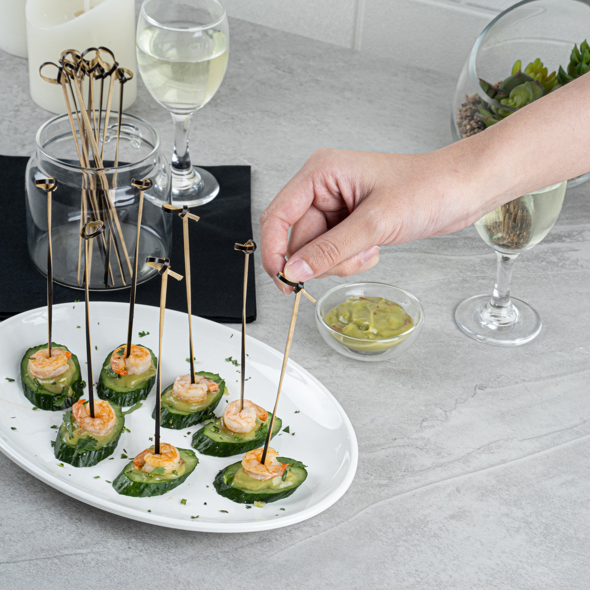 Bring a fun twist to your culinary presentations with our Pixy Black Bamboo Twisted Knot Picks. These bamboo picks, with their artistic knot design, will appeal to those seeking a unique way to showcase their gastronomic skills. Made from robust bamboo, these biodegradable fruit picks are durable and reliable, capable of withstanding any foodservice or catering challenge. With a pointed end, these commercially compostable food picks can effectively secure various kinds of food items for ease of serving. Suitable for warm and chilled dishes, these stylish picks are perfect for soirees, banquets, and other dining occasions. Featuring a convenient disposable design, these cocktail picks simplify the post-event cleaning process. Each skewer measures 6 inches in length, adding a stylish touch to your upcoming gatherings. Sold in a 1,000 count box.