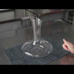 Enhance your wine service with effortless pouring precision. The Crystal Clarity Wine Carafe features a slanted top with a long neck, ensuring spill-free pouring to elevate your presentation. Crafted from hand-blown crystal glass, this crystal decanter offers superior clarity, providing an exquisite view of wines while adding an artisanal touch to your dining experience. With its wide bowl, this aerating wine decanter enriches the flavor and aroma by maximizing air exposure, making it ideal for fine dining restaurants and wine bars. The generous 50-ounce capacity accommodates a full bottle of wine, promoting optimal aeration and serving efficiency. Measuring 8.7 inches in both length and width, this carafe's durable glass material ensures longevity and is resistant to chipping, perfect for frequent use in bustling foodservice environments. Its modern, clear design effortlessly complements any table setting. Each order includes 1 Crystal Clarity Wine Carafe.