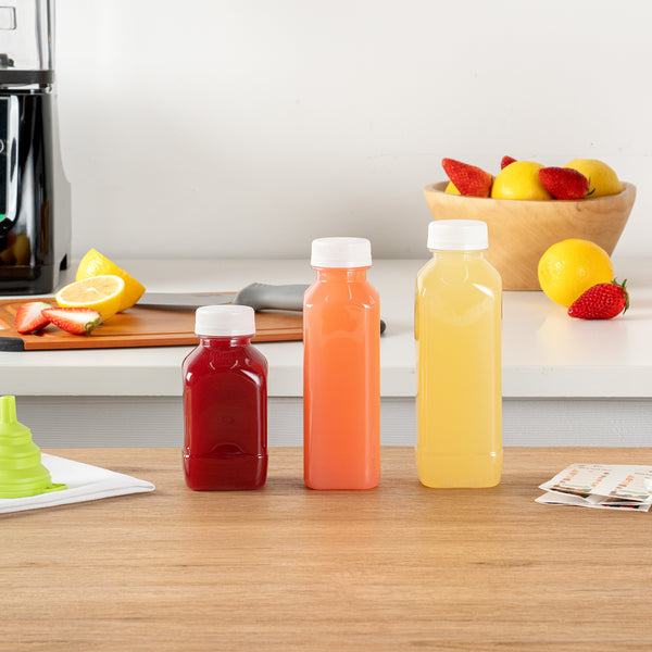 Equipped with twist-on caps, these empty juice containers ensure a tamper-evident seal, minimizing potential leaks and spills. Ideal for securely storing and transporting your favorite beverages!