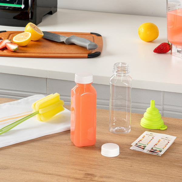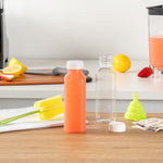Say goodbye to spills with this convenient addition! These empty water bottles are equipped with a silicone funnel for smooth and zero-mess juice bottling.
