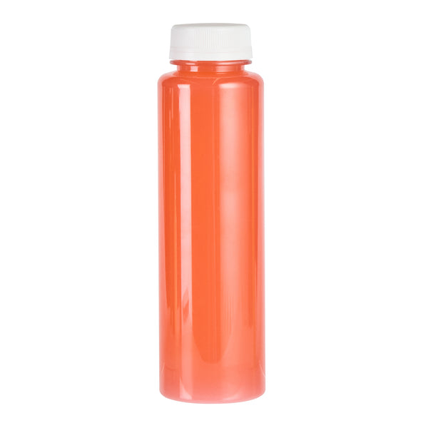 Securely package cold-pressed or fresh-squeezed juices using our Bottle Tek 12-Ounce Round Clear Plastic Cold Pressed Juice Bottles. These PET juice bottles provide you with an eco-friendly and healthy way to bottle up juices for delivery services. Each recyclable juice bottle includes a tamper-evident lid that creates an airtight seal to lock in the freshness of beverages and prevent accidental openings. With a round design, these plastic juice bottles are easy to hold which provides customers with a comfortable way to enjoy prepackaged smoothies, juices, cocktails, and other beverages on the go. Featuring a clear finish, these juice bottles with safety caps expertly showcase the vivid or vibrant colors of juices to make them the center of attention at your foodservice establishment. Conveniently label these clear juice bottles with our water-resistant drink labels to provide guests with an effortless way to differentiate beverages in refrigerator cases or grab-and-go drink displays. Containing up to 12 ounces, these round juice bottles measure 2 inches in diameter by 7.25 inches in height. Each order includes 100 juice bottles and 100 safety caps. Water-resistant drink labels are available and sold separately.