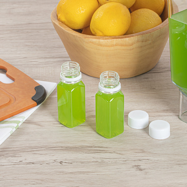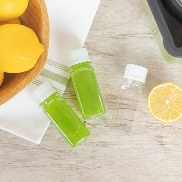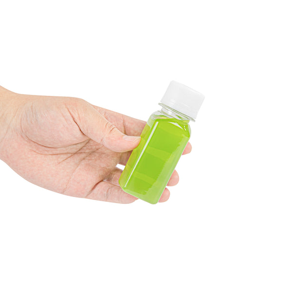 Our Bottle Tek 2-ounce Clear Plastic Energy Shot Bottles offer a sleek and secure packaging solution for your energy shots. Expertly designed, these 2-ounce plastic bottles ensure the freshness and integrity of your beverages with a reliable safety cap. The clear PET plastic construction enhances product visibility, showcasing the vibrant contents inside. The attractive square shape of these 2 ounce bottles adds a modern touch, making your product stand out on the shelf. Measuring 1.25 inches in diameter and by 3.75 inches in height, these mini shot bottles are perfect for small servings. Sold in a 100 count box.
