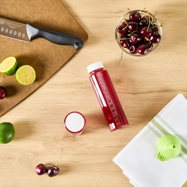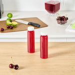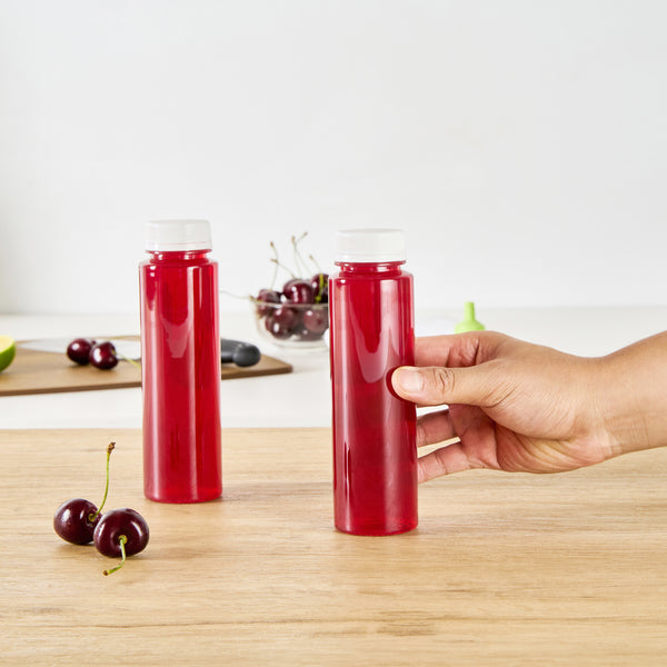 Conveniently package and display your freshly squeezed lemonades with our Bottle Tek8-ounce Round Clear Plastic Cold Pressed Juice Bottles. These juice bottles are built with premium plastic and are designed to keep your beverages fresh longer. With an 8-ounce holding capacity, these clear plastic bottles are ideal for packing cold-pressed juices, vibrant smoothies, fresh lemonades, or delectable cold-brewed coffees. Equipped with twist-on safety caps, these plastic juice bottles provide a tamper-evident and airtight seal to keep your juices fresh and ready-to-enjoy. These plastic bottles with caps have a clear finish that beautifully showcases the appealing color of the contents, while their white caps offer a sleek, clean look. For an easy cleanup post-drink, these round juice bottles are disposable. These disposable bottles measure 2 inches in diameter by 6.75 inches in height and can hold up to 8 ounces. Shipped in a 100 count box.