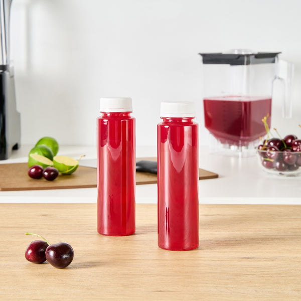 8 OZ ROUND CLEAR PLASTIC COLD PRESSED JUICE BOTTLE - WITH SAFETY CAP