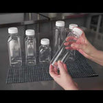 8 OZ SQUARE CLEAR PLASTIC COLD PRESSED JUICE BOTTLE - WITH SAFETY CAP