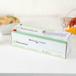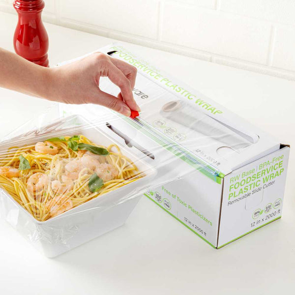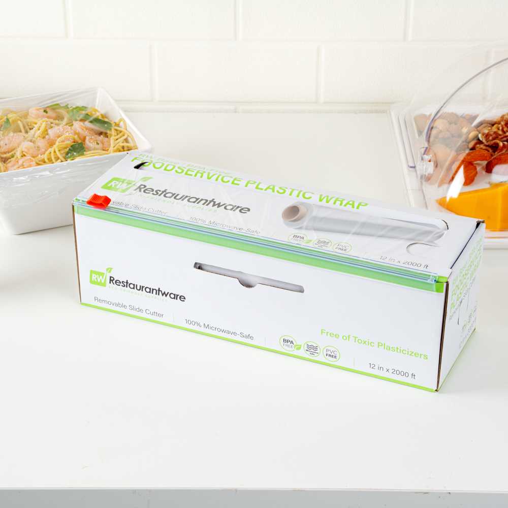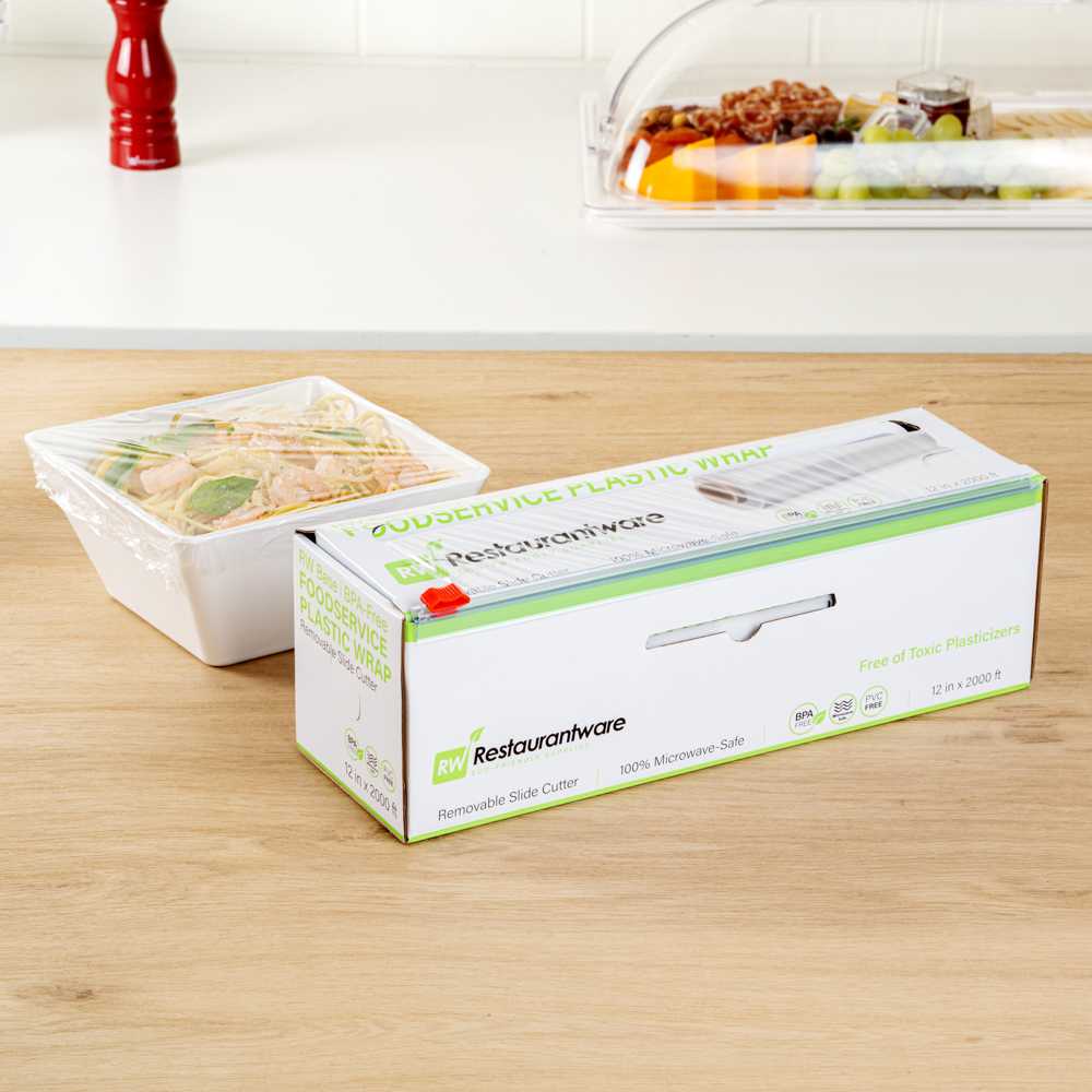 Effortlessly reheat meals without transferring containers. Chef 101 Microwavable Plastic Food Wrap provides a convenient solution with its microwavable design, allowing for quick reheating in any kitchen without the hassle of additional dishes. Each plastic food wrap includes a removable slide cutter for smooth, customizable dispensing, making it ideal for busy foodservice environments. Featuring a clear finish, this microwavable plastic wrap keeps contents visible for quick identification, streamlining kitchen workflow. Measuring 12 inches wide and 2000 feet long, these cling wrap rolls are made from durable plastic that is cold food friendly, freezer-safe, and greaseproof—perfect for a variety of storage and prep needs. With a recyclable design, they also support eco-conscious operations. Enhance your foodservice efficiency with these practical, high-performance wraps. Each order includes 2 Chef 101 Microwavable Plastic Food Wraps.